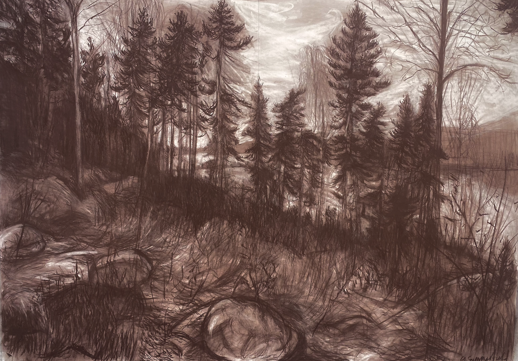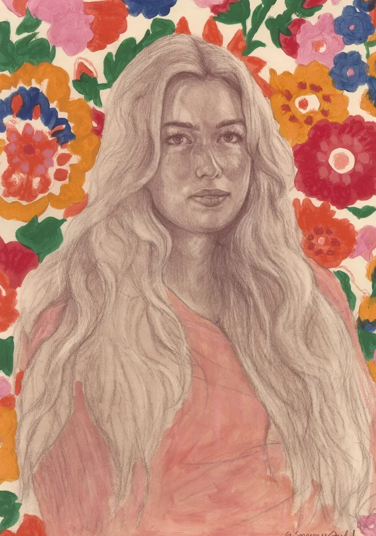 “I’ve never been one for overt flattery in portraiture so was thrilled to have Gideon Summerfield‘s work, with its Freudian levels of scrutiny, introduced to me last summer. I was fortunate enough to meet Gideon in New York and then again in London, sitting for him in both cities. The result is this portrait drawing, which I can see is full of the artist’s idiosyncrasies as a draughtsman. There is a rawness and honesty to the way Gideon portrays people, that some may find a little overwhelming, but that I believe reveals a maturity and artistic self-confidence far beyond his years (23). Thank you Gideon, I wouldn’t change a mark!”
